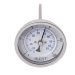 Bimetal thermometer with 3" stainless steel dial face and 1/2" NPT male back mounting connection for thermometer well.